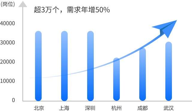 互联网、金融、医疗、教育、新零售等全行业需求,一线城市(北京、上海、深圳)岗位量超 3 万个,新一线城市(杭州、成都、武汉)需求年增 50%,技术难以替代,就业选择多。